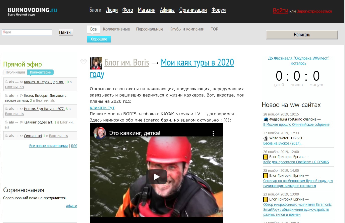 Однако, люди все еще посещают Бурноводинг. Зачем? Да ради той же RSS-ленты, чтобы узнать, не написал ли кто-нибудь что-то интересное в своем блоге. А еще ради торговой площадки, чтобы впарить свое старье подорого. Тем не менее, Burnovoding давно перестал быть самым читаемым сайтом про каякинг в рунете. А жаль, все так хорошо начиналось.